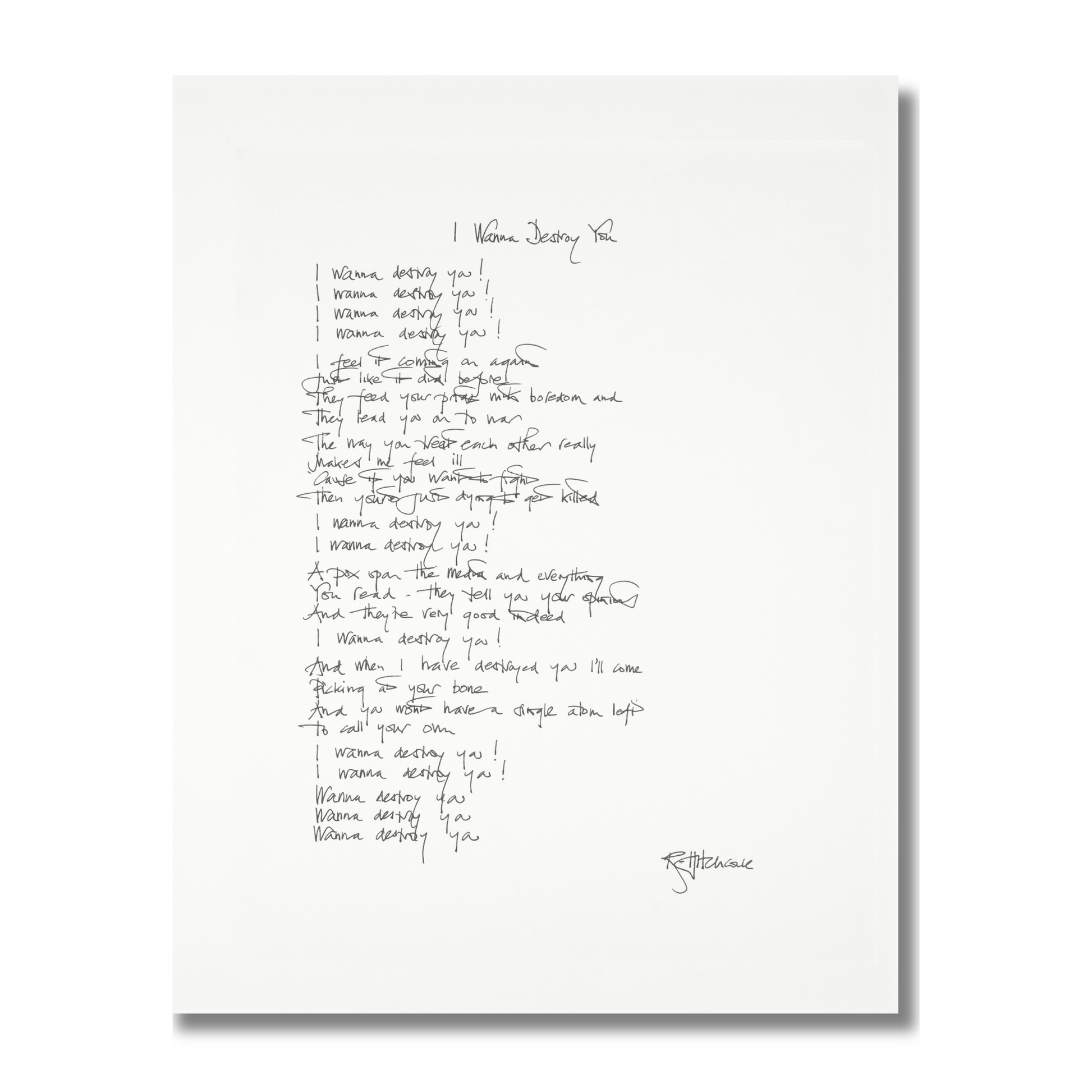 THE SOFT BOYS "I WANNA DESTROY YOU" HANDWRITTEN LYRICS