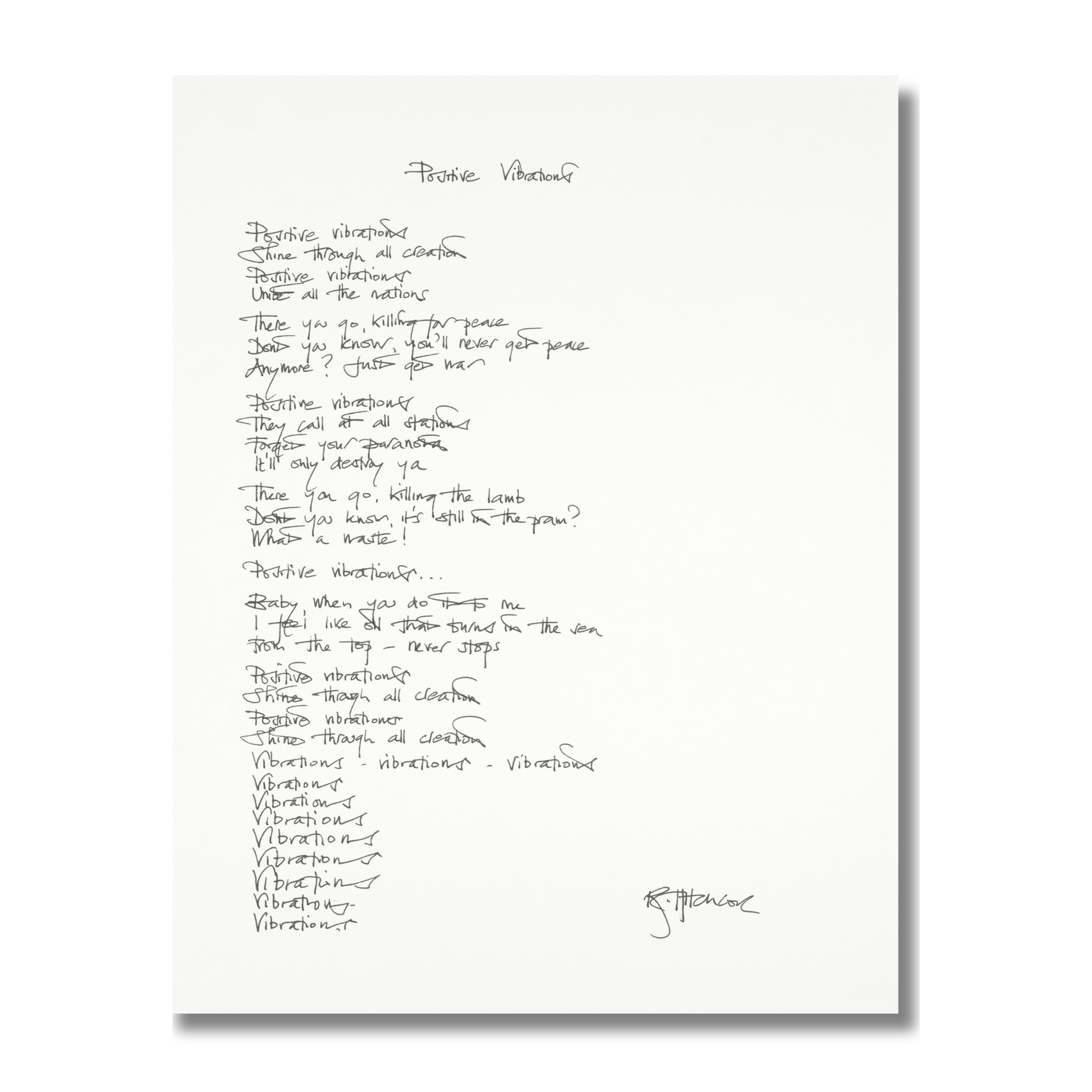 THE SOFT BOYS "POSITIVE VIBRATIONS" HANDWRITTEN LYRICS